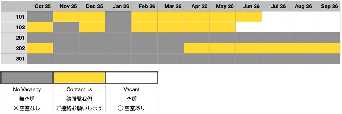Name *E-Mail *Select a room *選擇一個選項Check-in *Check-out (minimum of 28 days) *